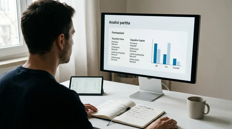 InizioArticoli Articoli Glossario Scommesse Calcio: Tutti i Termini del Betting dalla A alla Z Ilario Lombardi • 03.04.2026 Errori Scommesse Calcio: Gli Sbagli che Fanno Perdere Tutti Ilario Lombardi • 03.04.2026 Calcio Virtuale: Guida alle Scommesse su Partite Generate da Algoritmi Ilario Lombardi • 03.04.2026 Betting Exchange: Guida Completa alle Scommesse tra Utenti Ilario Lombardi • 30.03.2026 Draw No Bet: Guida alla Scommessa che Elimina il Pareggio Ilario Lombardi • 30.03.2026 Goal No Goal: Guida Completa alla Scommessa GG/NG nel Calcio Ilario Lombardi • 30.03.2026 Scommesse Antepost Calcio: Vincente, Retrocesse e Capocannoniere Ilario Lombardi • 27.03.2026 Scommesse Bundesliga: Quote, Gol e Strategie sul Campionato Tedesco Ilario Lombardi • 27.03.2026 Scommesse Liga Spagnola: Quote, Strategie e Partite Chiave Ilario Lombardi • 27.03.2026 Scommesse Premier League: Quote, Caratteristiche e Strategie Ilario Lombardi • 23.03.2026 Scommesse Serie B: Quote e Strategie sul Campionato Cadetto Ilario Lombardi • 23.03.2026 Scommesse Coppa Italia: Quote e Strategie per la Competizione a Eliminazione Ilario Lombardi • 23.03.2026 Scommesse Europa League e Conference: Guida alle Coppe Europee Minori Ilario Lombardi • 20.03.2026 Bankroll Management: Come Gestire il Budget nelle Scommesse Ilario Lombardi • 20.03.2026 Value Bet nel Calcio: Come Trovare Quote Sbagliate dai Bookmaker Ilario Lombardi • 20.03.2026 Pronostici Calcio: Come Analizzare le Partite per Scommettere Meglio Ilario Lombardi • 16.03.2026 Scommesse Multiple Calcio: Come Costruire la Schedina Giusta Ilario Lombardi • 16.03.2026 Scommesse a Sistema: Come Vincere Anche Sbagliando Qualcosa Ilario Lombardi • 16.03.2026 Registrazione con SPID sui Bookmaker: Guida Completa e Veloce Ilario Lombardi • 13.03.2026 Metodi di Pagamento per Scommesse: Depositi, Prelievi e Costi Ilario Lombardi • 13.03.2026